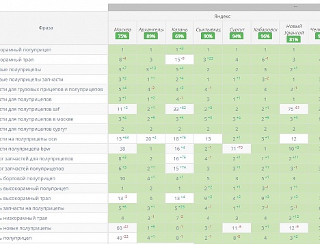 Продвижение по позициям позволяет акцентировать внимание на конкурентах и составлять план работ относительно запросов, по которым необходимо быть в ТОП.