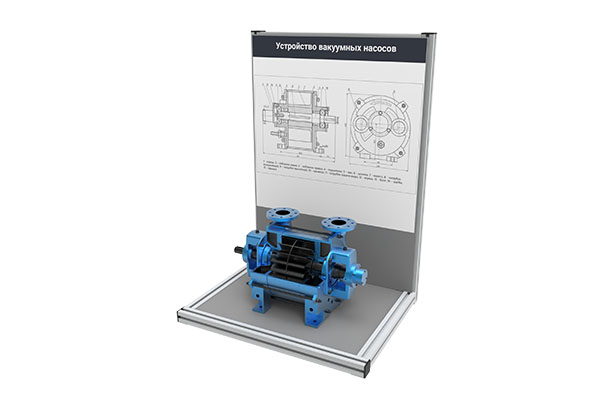Представляет собой планшет, с закрепленным на нем насосом в разрезе и текстовой информацией о конструктивных элементах. Планшет может быть размещен на столе или стене, с использованием специальных креплений, входящих в комплект поставки. В комплект входит методическое пособие с подробным описанием устройства, принципа работы и сфер применения представленного насосного агрегата.